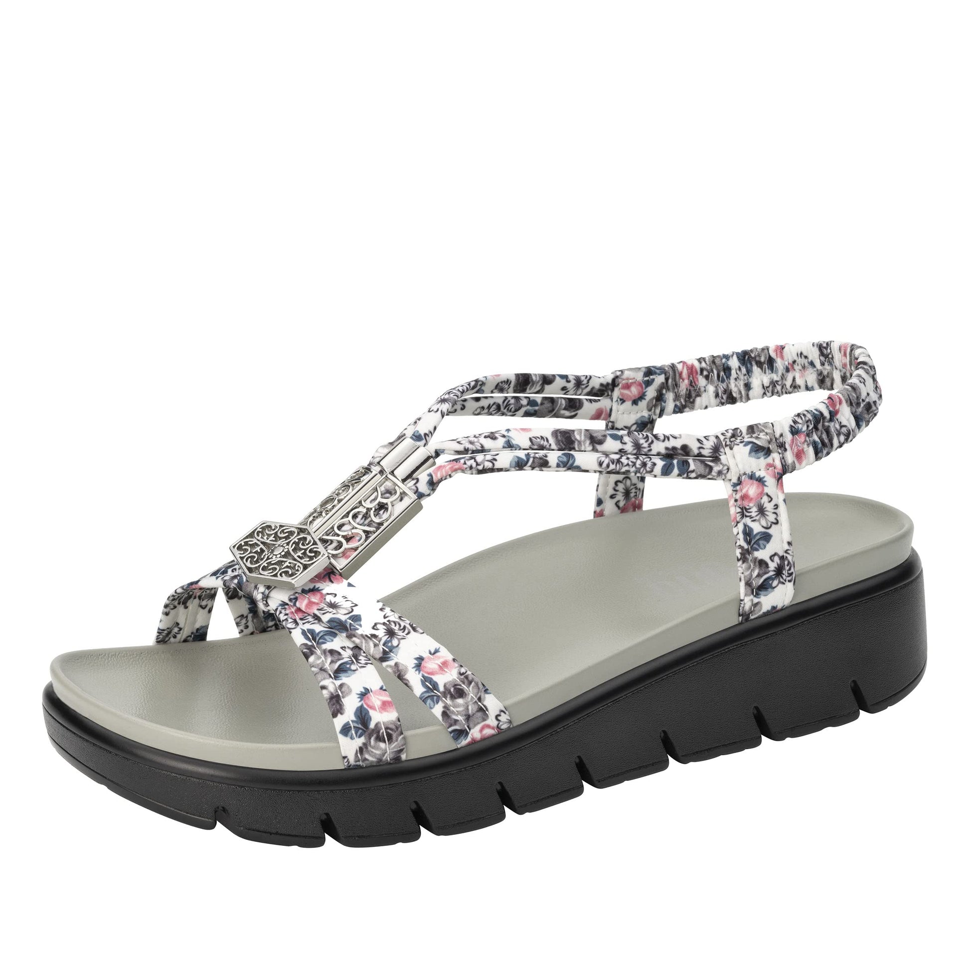 . For “Last Call” shoes, all sales are final—we do not accept any returns, whether for refund or exchange, with respect to “Last Call” shoes. Please note that this is a "Last Call" shoe No need to compromise on fit with this Roz sandal detailed with functional ornamental hardware that adjust for a customized fit. A contoured footbed gently cradles the foot, while the lightweight heritage outsole combines comfort with '70s flair. Featured in a floral printed Lovely Grey design on a leather upper, this t-strap sandal has all the chic boho appeal your summer outfits are looking for.